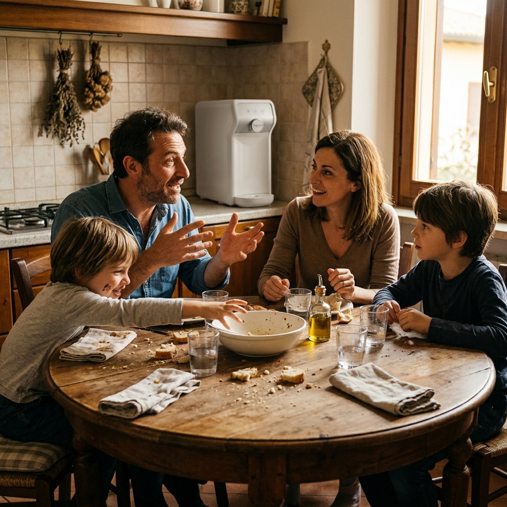 In casa siamo in cinque e consumiamo tantissima acqua. Avevamo il dispenser con i bidoni, ci rompeva ogni settimana. Con l'Erogatore Top ho risolto tutto: fredda, frizzante, filtrata. Mio figlio ha smesso di chiedere le bibite.